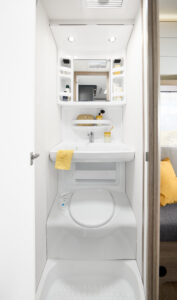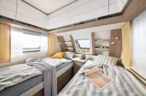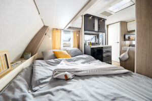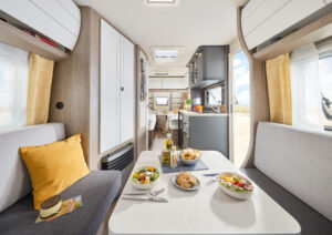 Comfortabel slaapcomfort tot 4 personen – slimme indelingen met dwarsbed en praktische zitgroep die eenvoudig om te bouwen is tot extra slaapplaats.